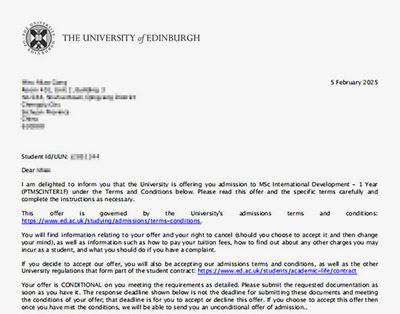 接下来,为大家分享一个成功圆梦爱丁堡大学的二硕典型案例。