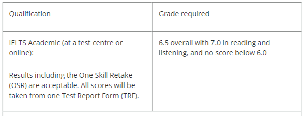 对于没有在英语国家有过学习经历的中国学生来说,有合格的雅思成绩是申请英国硕士的硬性标准。硕士阶段的雅思要求普遍为总分6.5且单项不低于6.0,一些前百院校的热门专业甚至要求7.0+的雅思成绩。