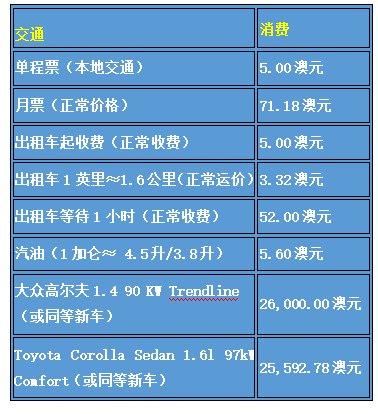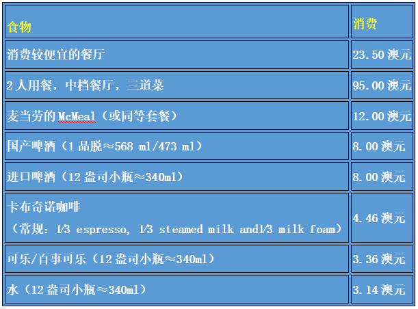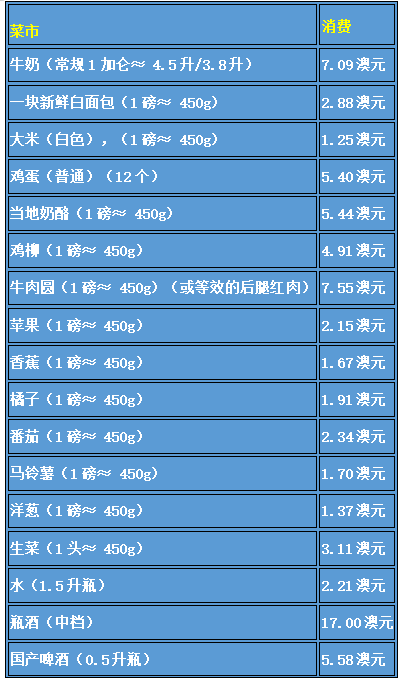 堪培拉每周平均生活费用 |