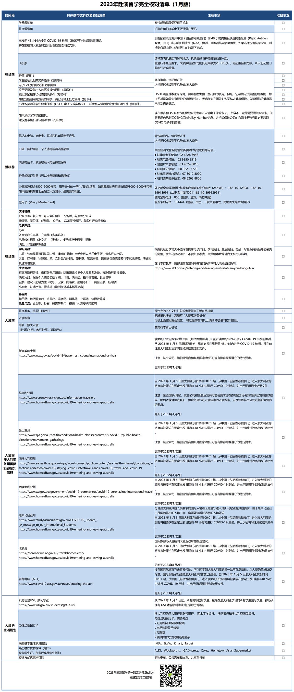 2023年赴澳留学完全核对清单(1月版)