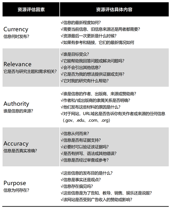 ‘CRAAP ’评估资源可用工具