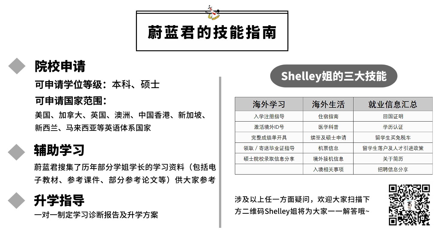同时学校提供了一系列有用的在线学术技能资源,来帮助同学最优化地进行学习,包括无限制地访问 LinkedIn学习。学术技能中心的在线资源涵盖了广泛的主题以支持同学们的学习,包括学术写作,考试建议和时间管理等。