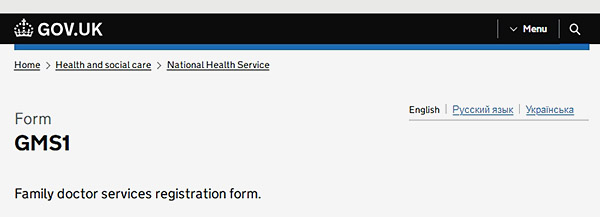 你可以直接前往 GP 诊所的前台,说明自己想要注册 GP(register with the GP),并领取一份 GMS1 表格进行填写。也可以提前在网上下载并填写好这份表格,然后带过去,下载链接: